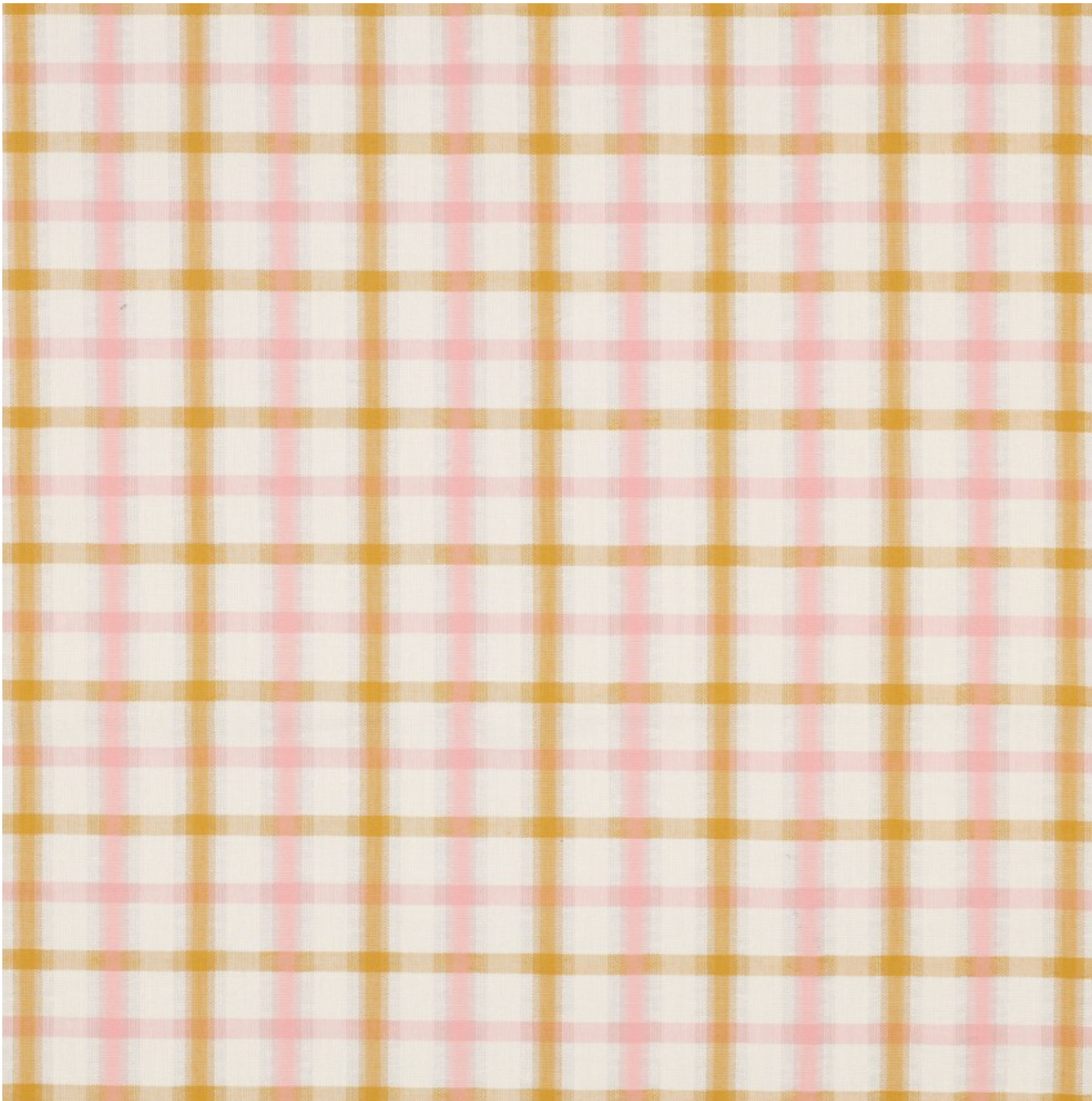 Verhees Pink and Mustard windowpane check Seersucker, 1/4 yard