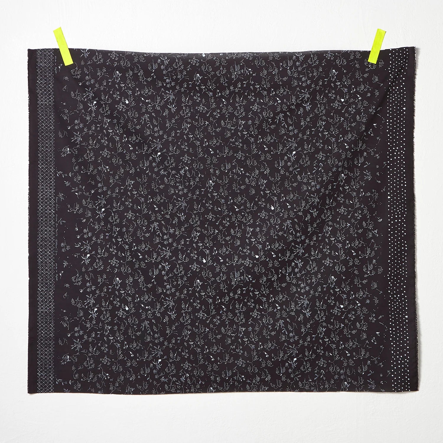 Hokkoh OSKikka, Framed Flowers, Violet and Grey on Black, Cotton Viyella, 1/4 yard