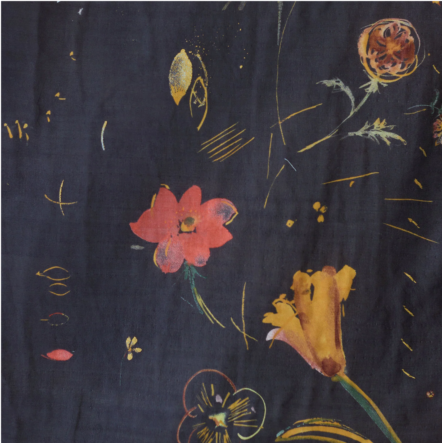Nani IRO Hana no toki niwa, Organic Cotton Double Gauze, black, 1/4 yard