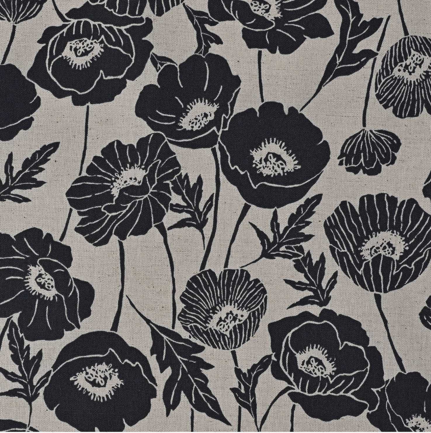 Kokka, One Flower Poppy Cotton Sheeting, grey, 1/4 yard