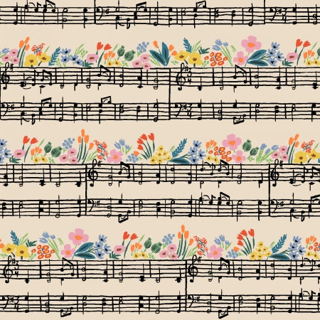 Rifle Paper Co., Bramble - Music Notes - Natural Canvas Fabric, 1/4 yard