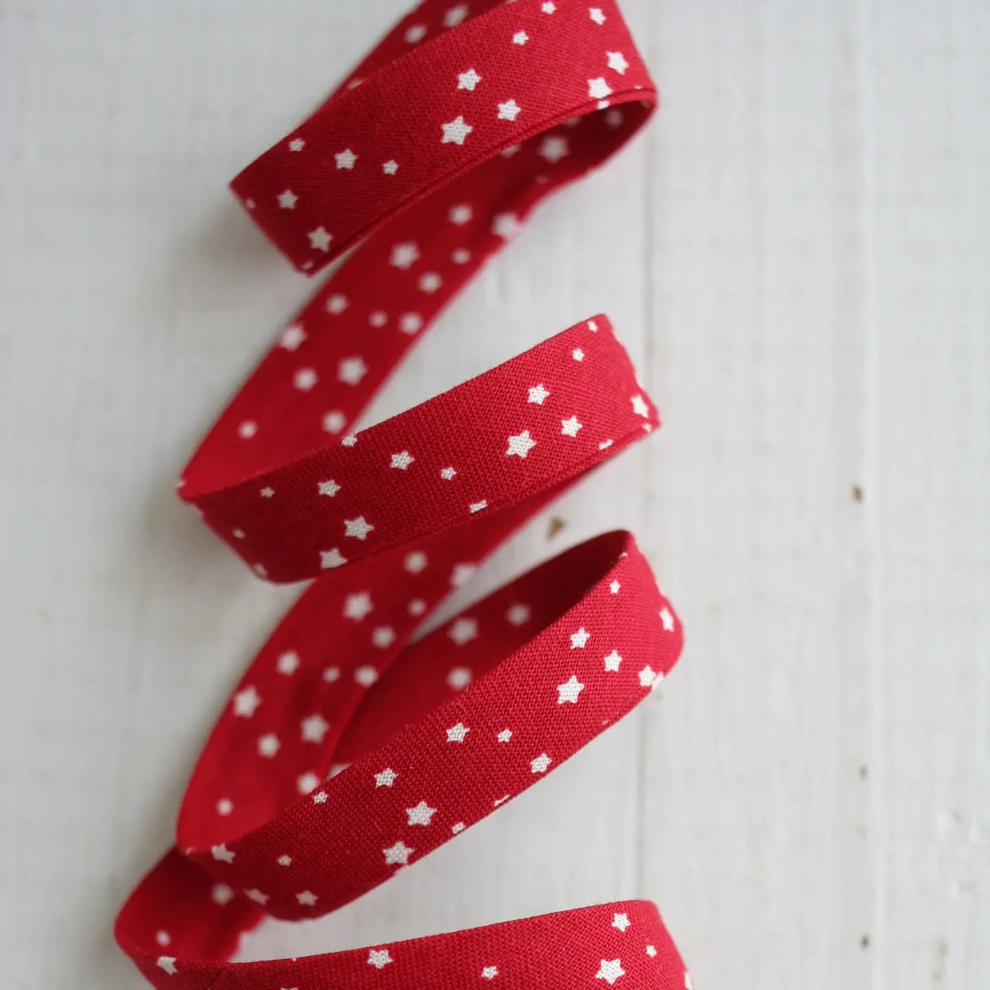 1/2" Double Fold Bias Binding - Red Stars, 100% Cotton, one yard
