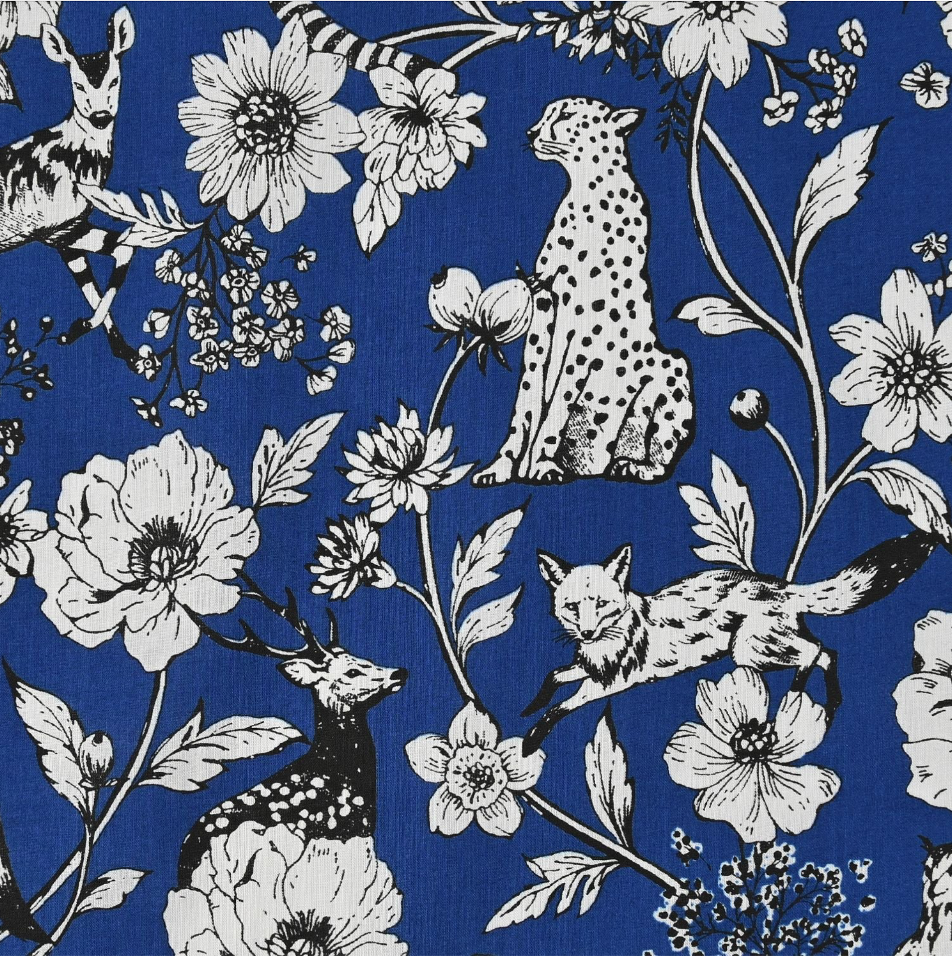 Kokka Powerful Animal Cat Floral GardenCotton Oxford Fabric, 1/4 yard