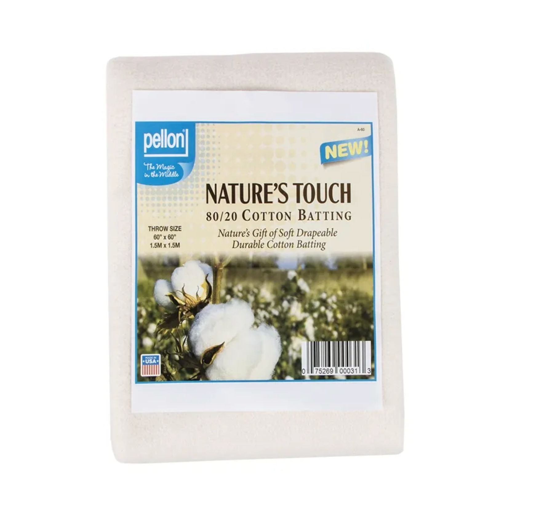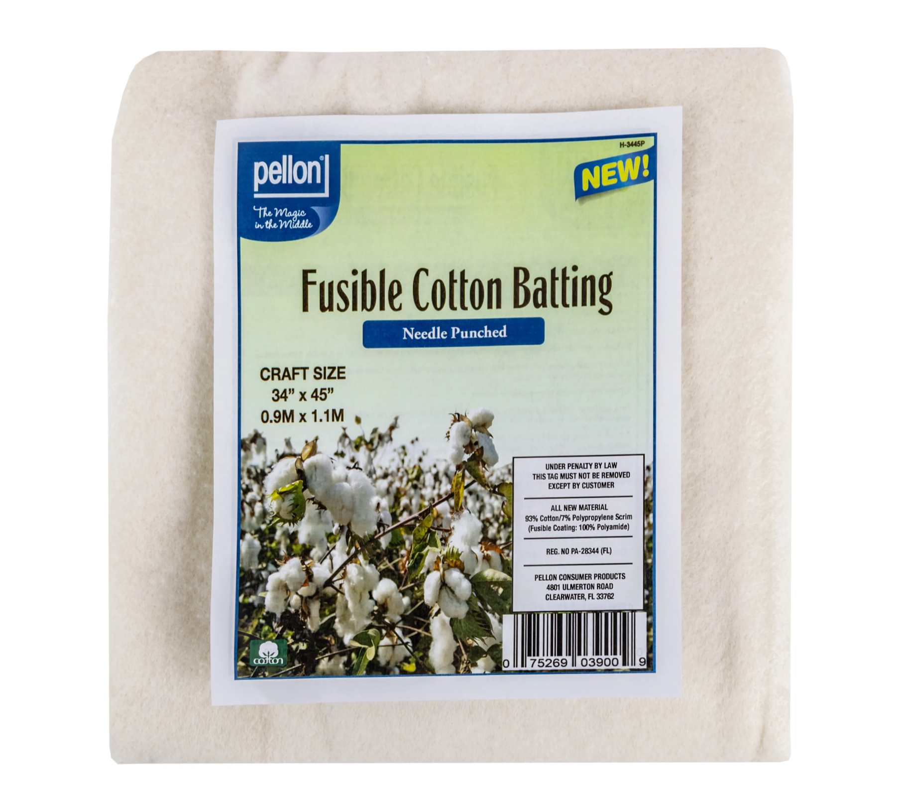 Pellon Fusible Cotton Batting, Craft or throw size, packaged