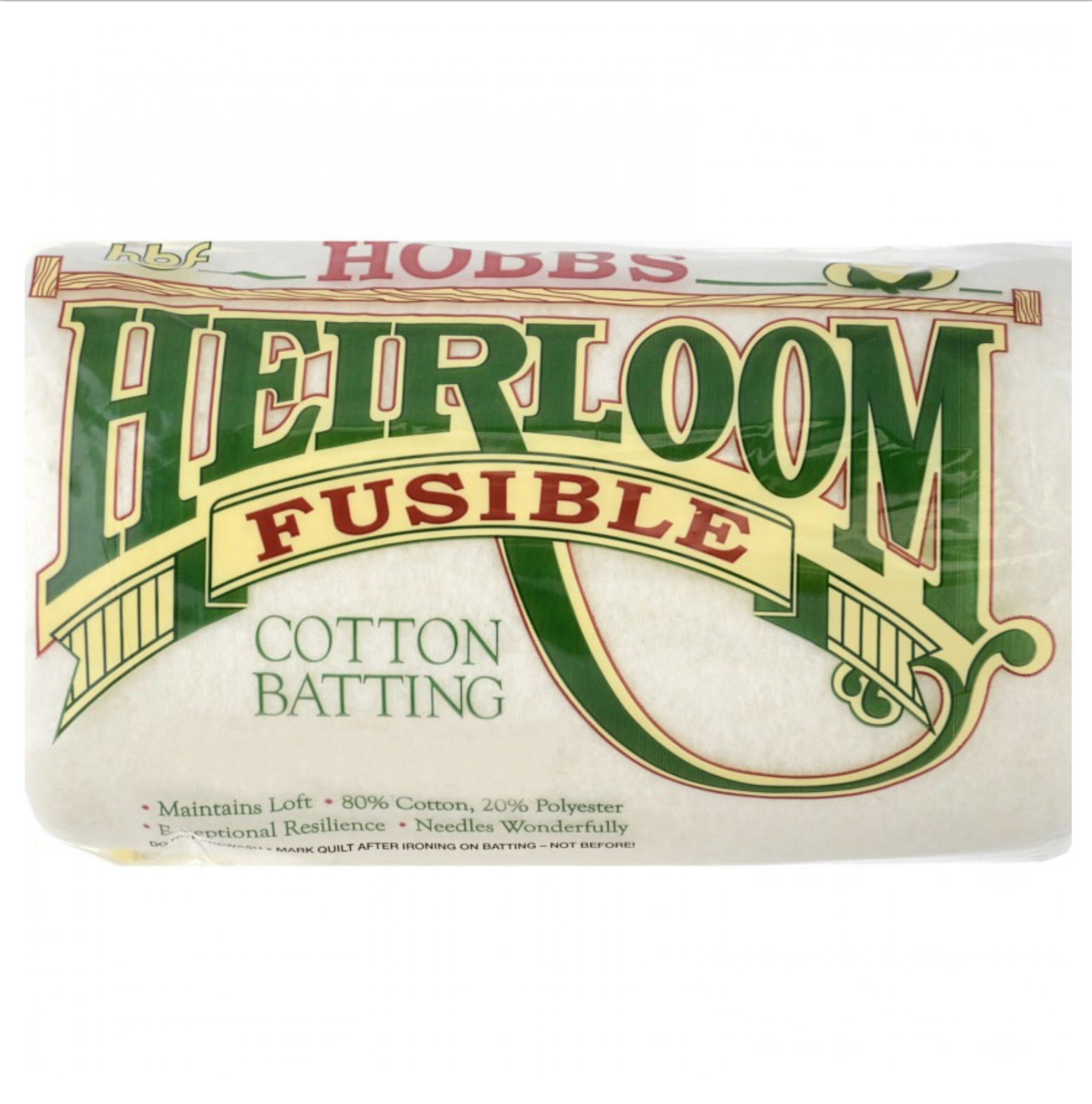 Heirloom Fusible Cotton Blend Batting, Crib or queen size, packaged