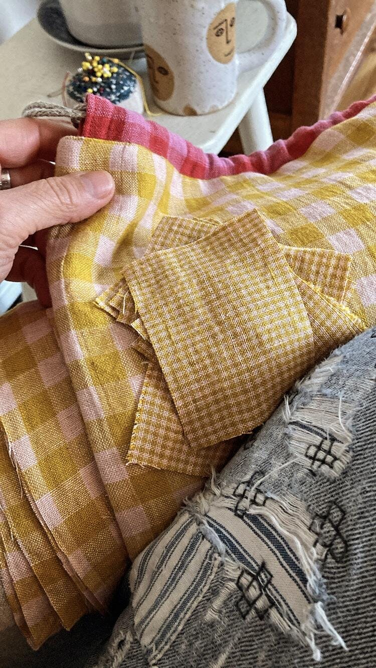 Merchant & Mills, European Laundered Linen, "Wes" Pink and Mustard Check, 1/4 yard